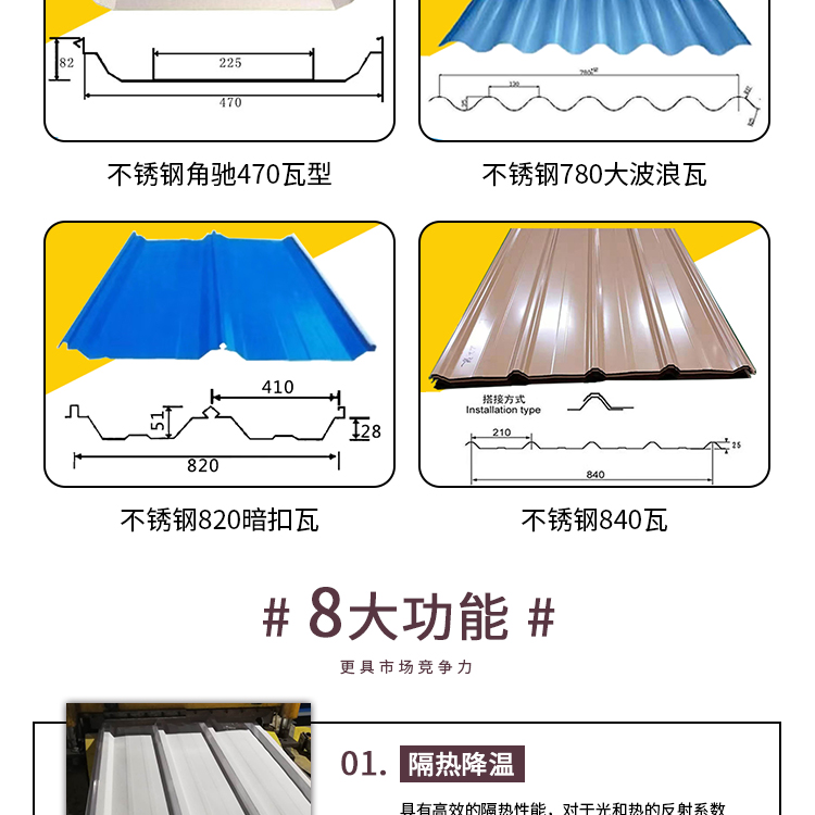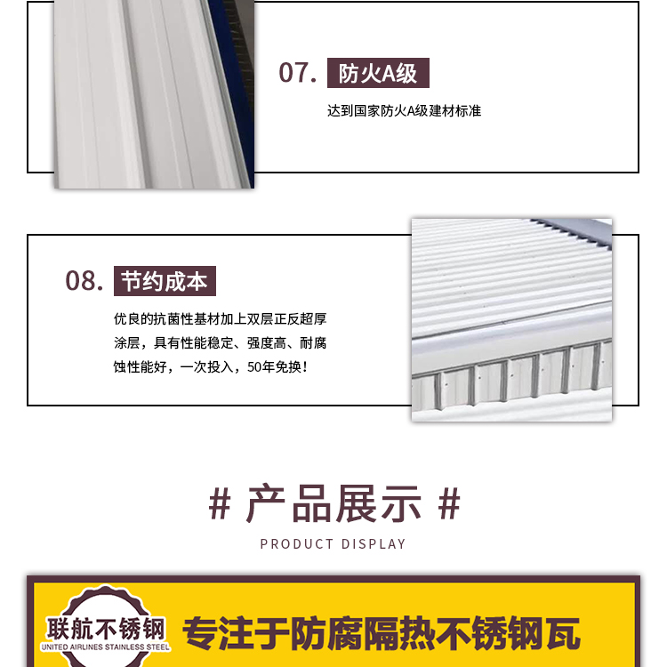 聯(lián)航不銹鋼瓦,時間驗證優(yōu)勢,事實證明品質(zhì)。我司提供防腐隔熱不銹鋼瓦、不銹鋼瓦、不銹鋼天溝、不銹鋼C型鋼。
